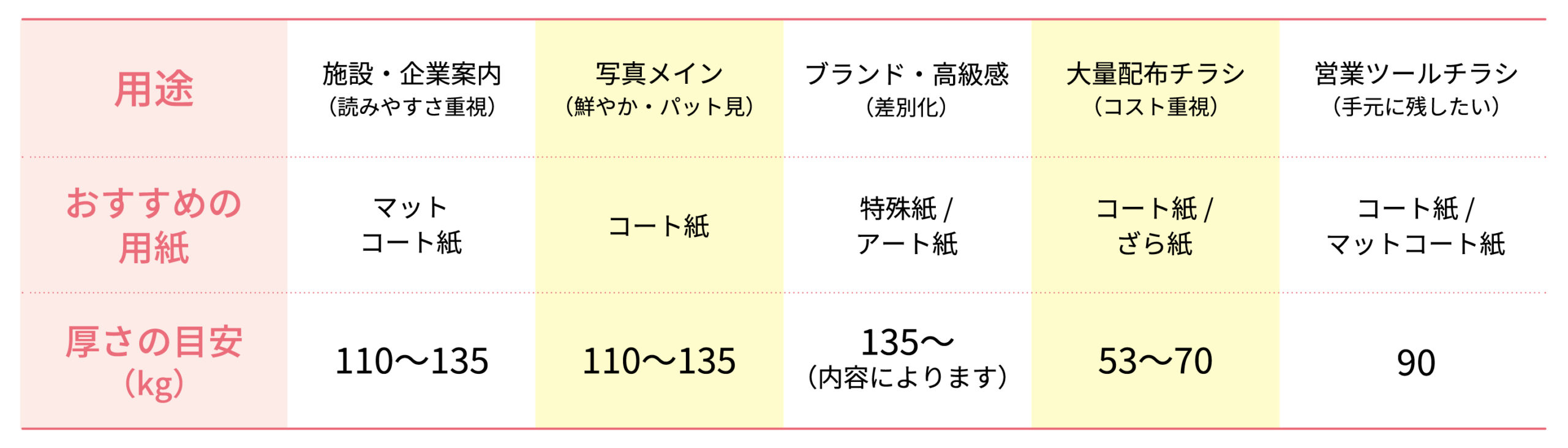手に取ってもらいたいなら「軽め」、保存してもらいたいなら「厚め」にしましょう。