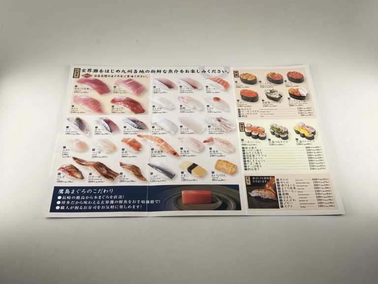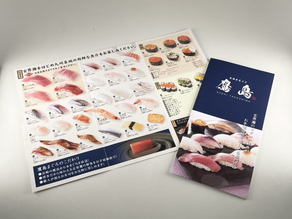 福岡市博多区の寿司店、玄海本まぐろ 鷹島様の三つ折りリーフレット制作事例をご紹介しました。