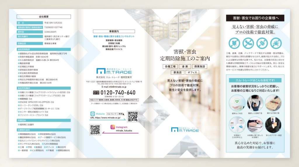 株式会社エム・トレード様の営業案内リーフレットをご紹介いたします。