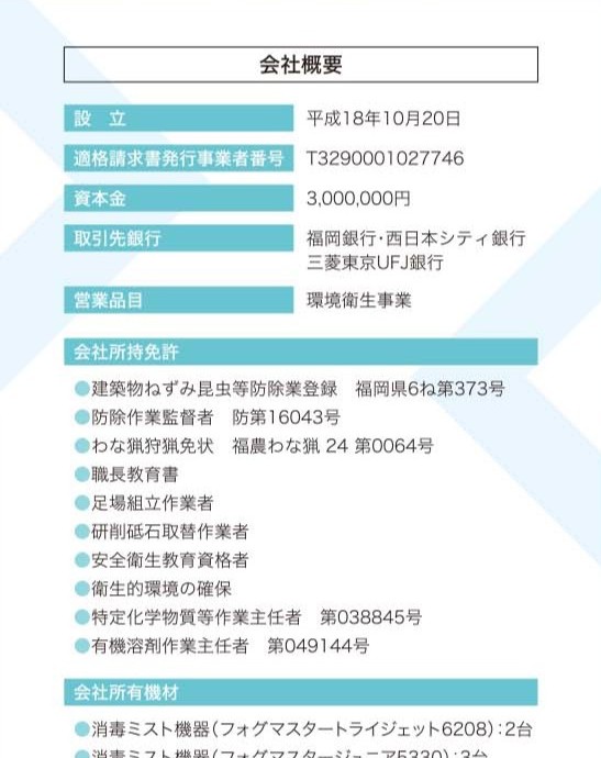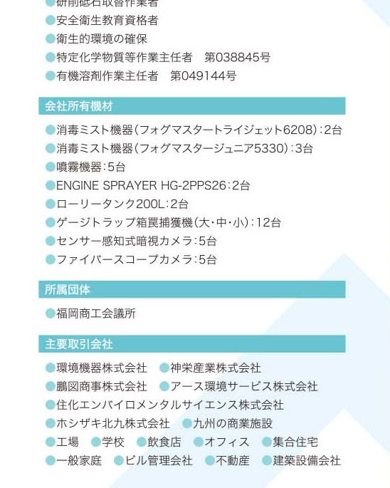 【福岡営業所】〒811-2221 福岡県糟屋郡須恵町大字旅石207-3 オフィスパレア須恵1号 - 業種: 害虫・害獣駆除、環境衛生