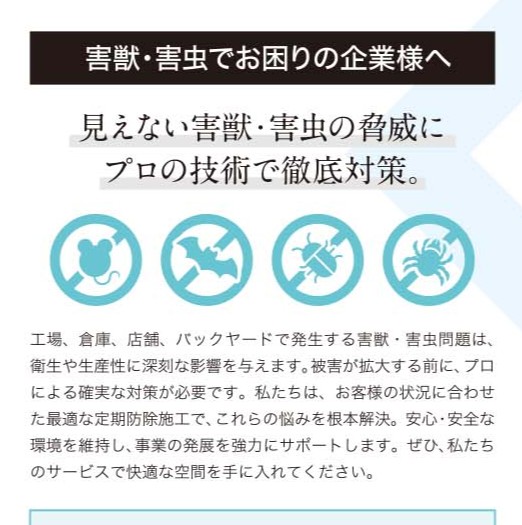 害虫・害獣対策のプロフェッショナルとして、幅広い事業内容と確かな技術力をわかりやすく提示することが課題でした。