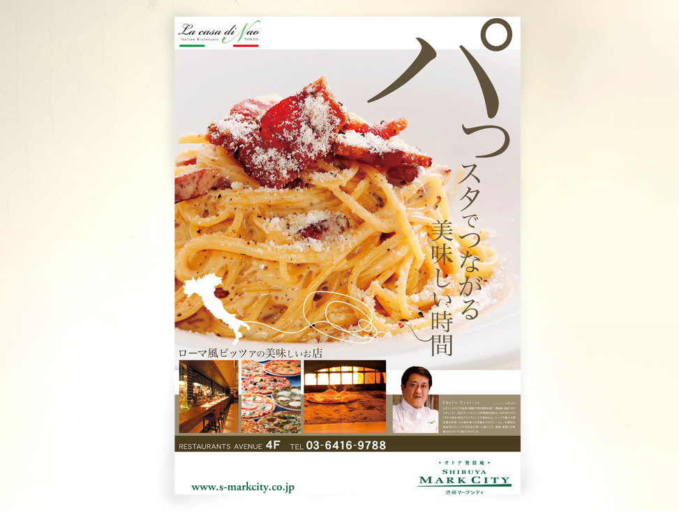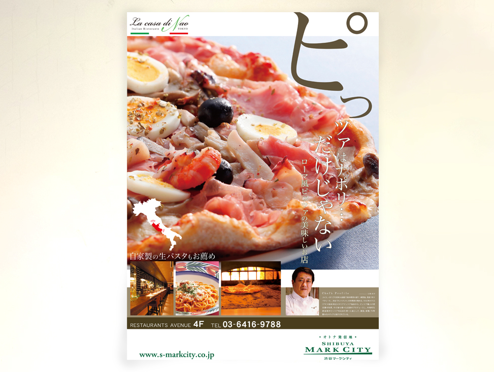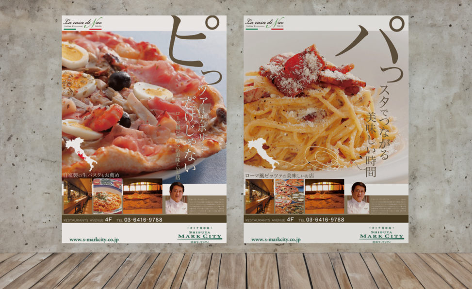 ラ・カーサ・ディ・ナオ 渋谷店のパスタとピザを告知するポスターを作成させていただきました。