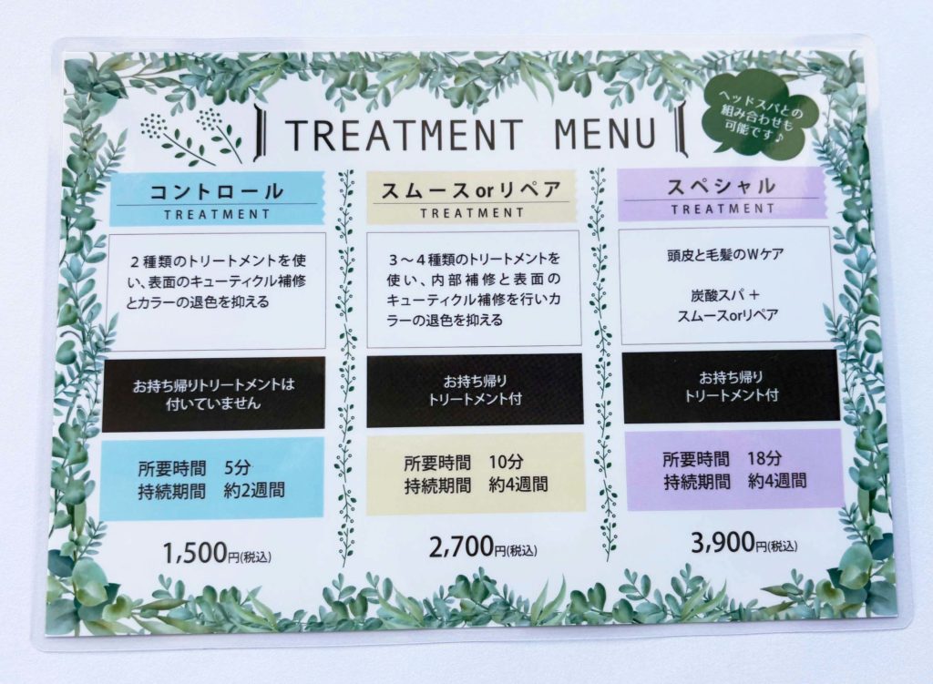 顧客体験の向上: 美容室におけるトリートメントは、髪のケアだけでなく、心のリフレッシュも提供するものです。このメニューPOPは、その両面を重視し、お客様が施術前から心地よい体験をイメージできるよう、視覚的な要素にこだわりました。