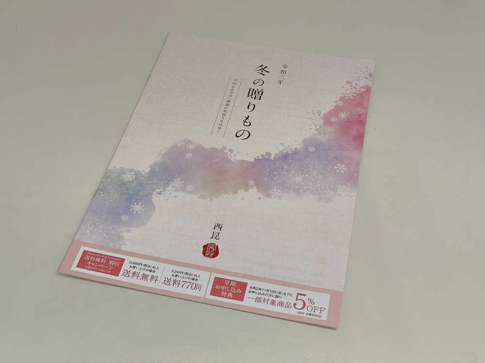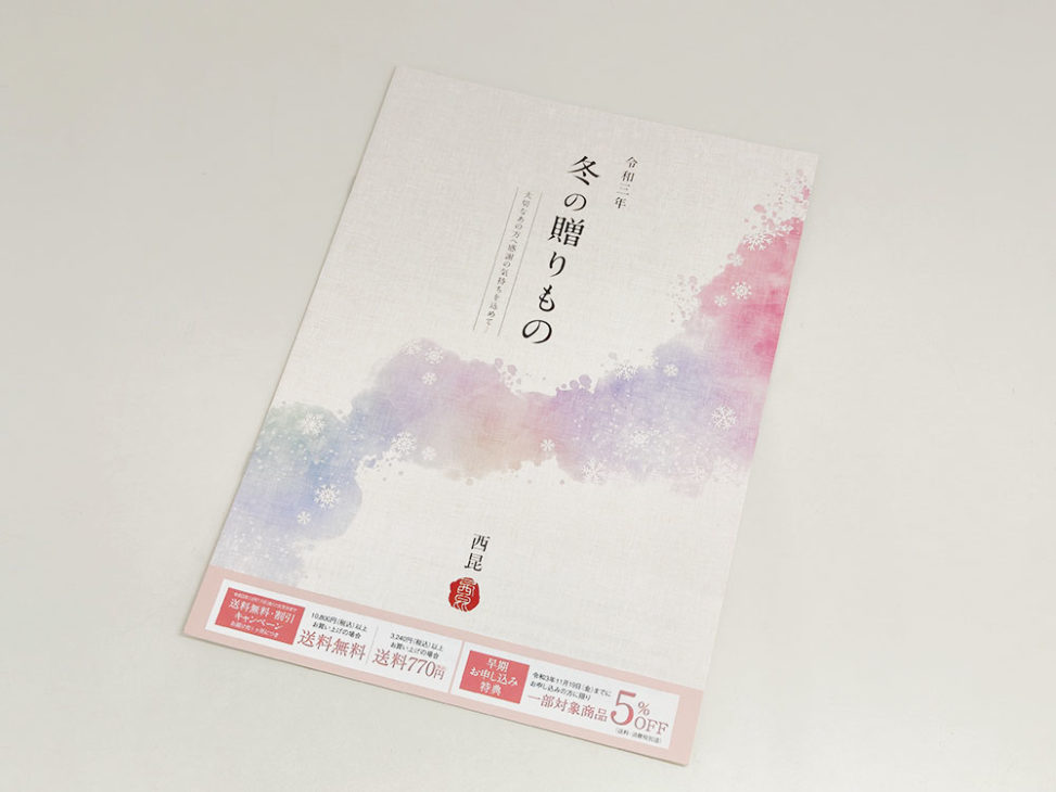 株式会社 西昆様より、冬のギフトシーズンに向けた顧客向けカタログ制作のご依頼。競合との差別化を図り、商品の魅力だけでなく、贈り物としての特別感や温かみを伝えるカタログを求めていました。